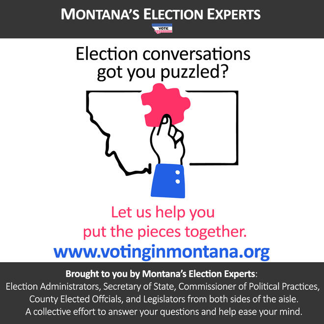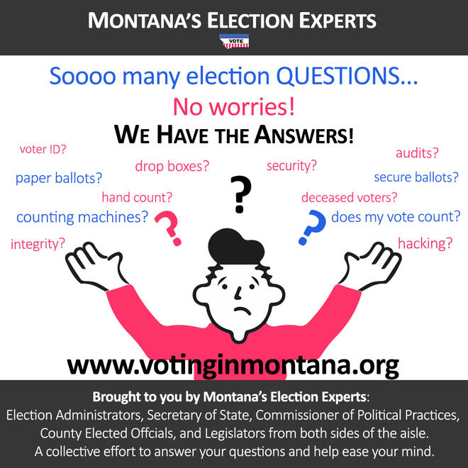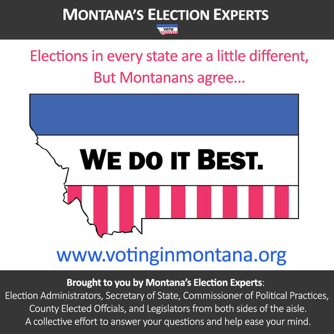 ✓ Montana’s elections are administered by certified elected or appointed officials with the assistance of trained volunteers who are your neighbors and members of your community.
