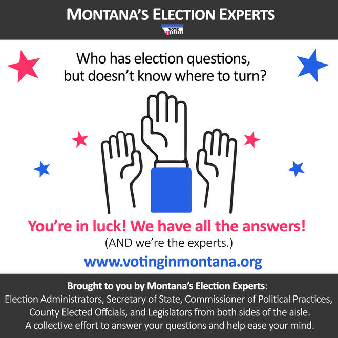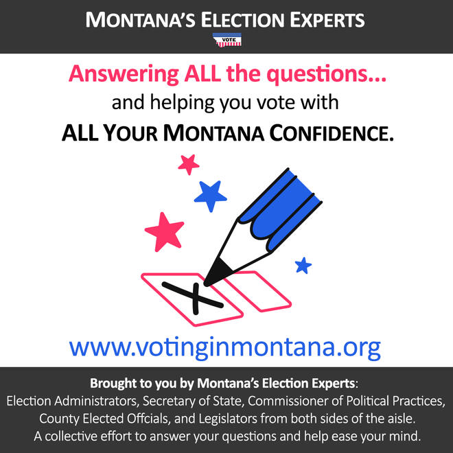 VotinginMontana.org is a project of the Montana Association of Clerk & Recorders and Election Administrators. The material was developed by the 2022 Election processes work group that included Montana Legislators, the Montana SOS, the Montana COPP, MACO, Montana County Attorneys, and other interested parties.