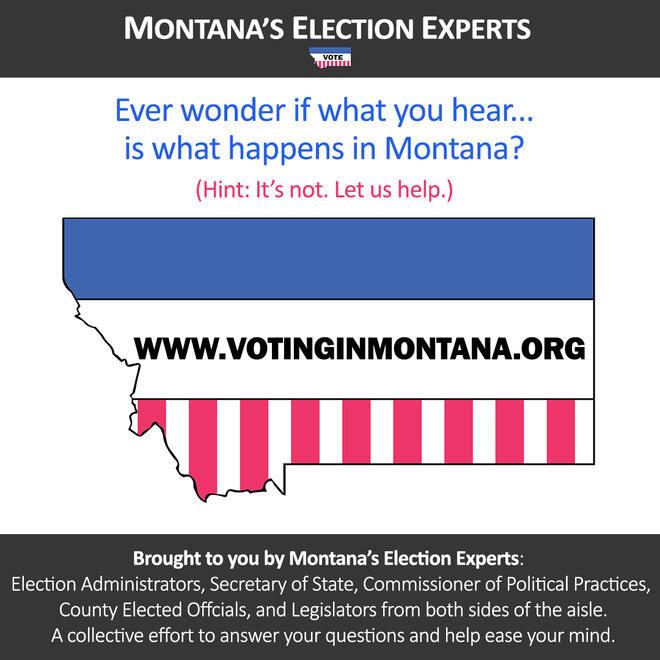 ✓ Montana’s elections are administered by certified elected or appointed officials with the assistance of trained volunteers who are your neighbors and members of your community.